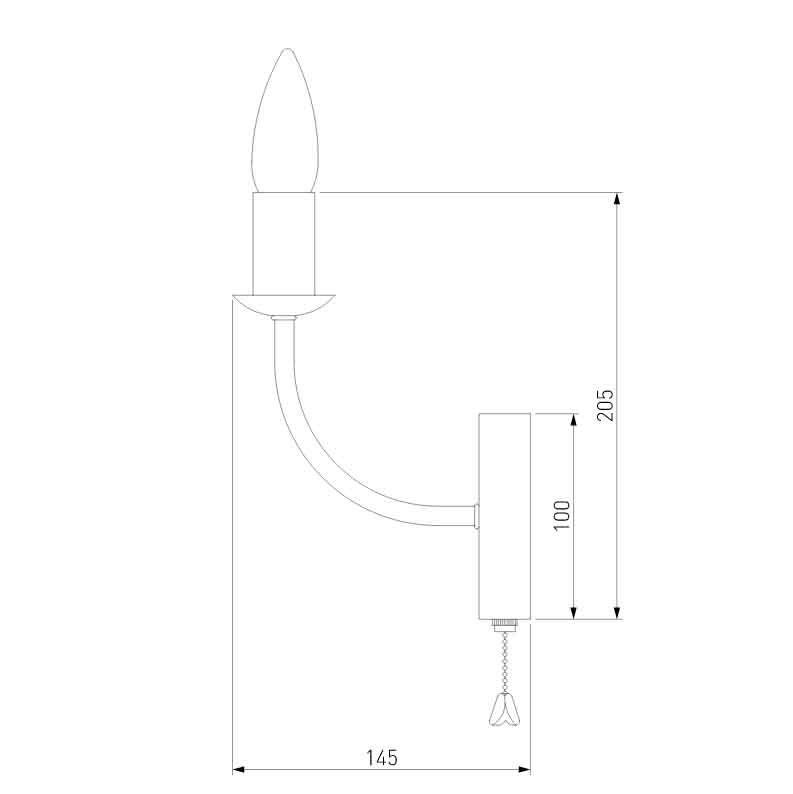 Для БРА необходима 1 лампа накаливания 40 W и цоколем E14. Габариты изделия: высота – 205 мм, диаметр – мм.