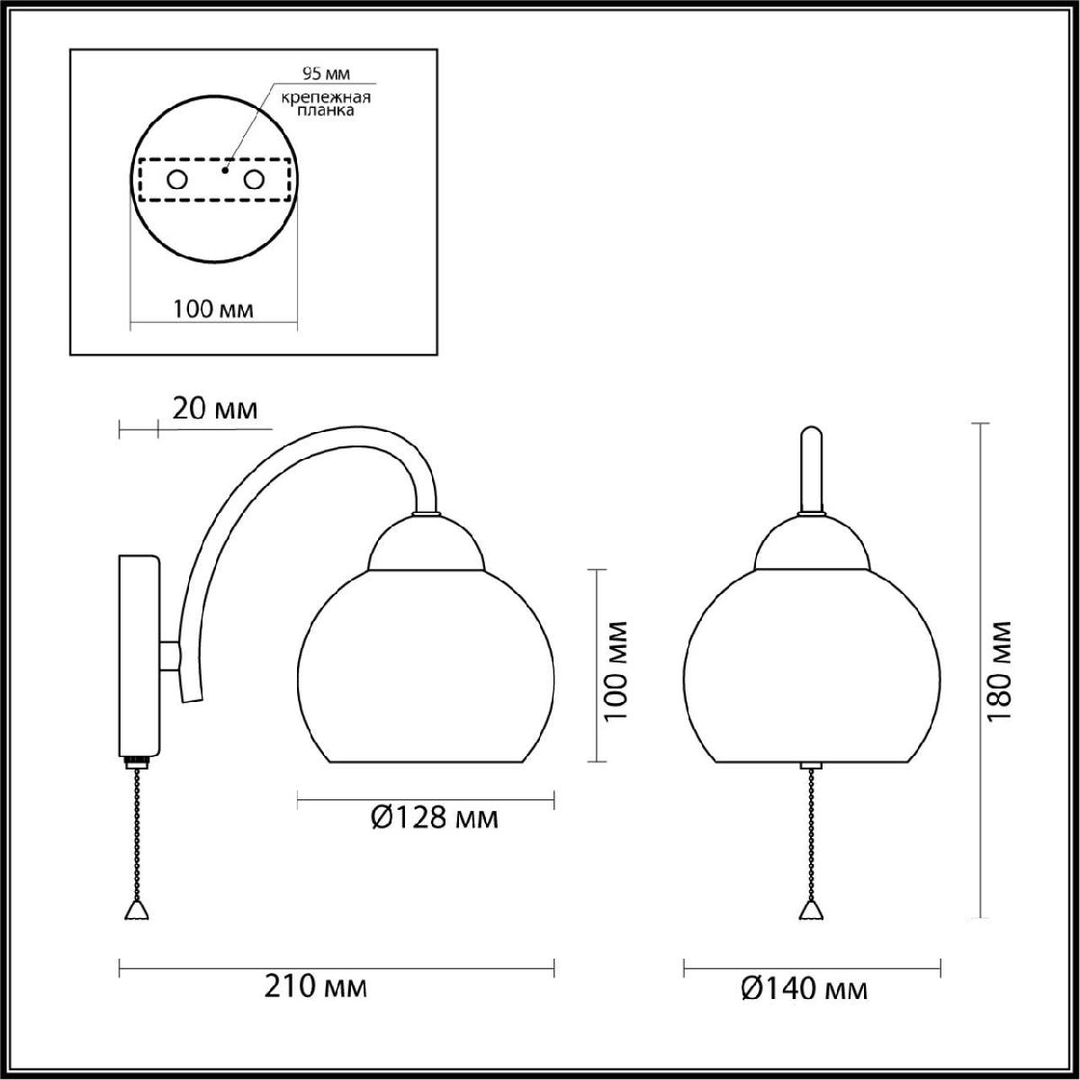 Для БРА необходима 1 лампа накаливания 40 W и цоколем E27. Габариты изделия: высота – 180 мм, диаметр – мм.