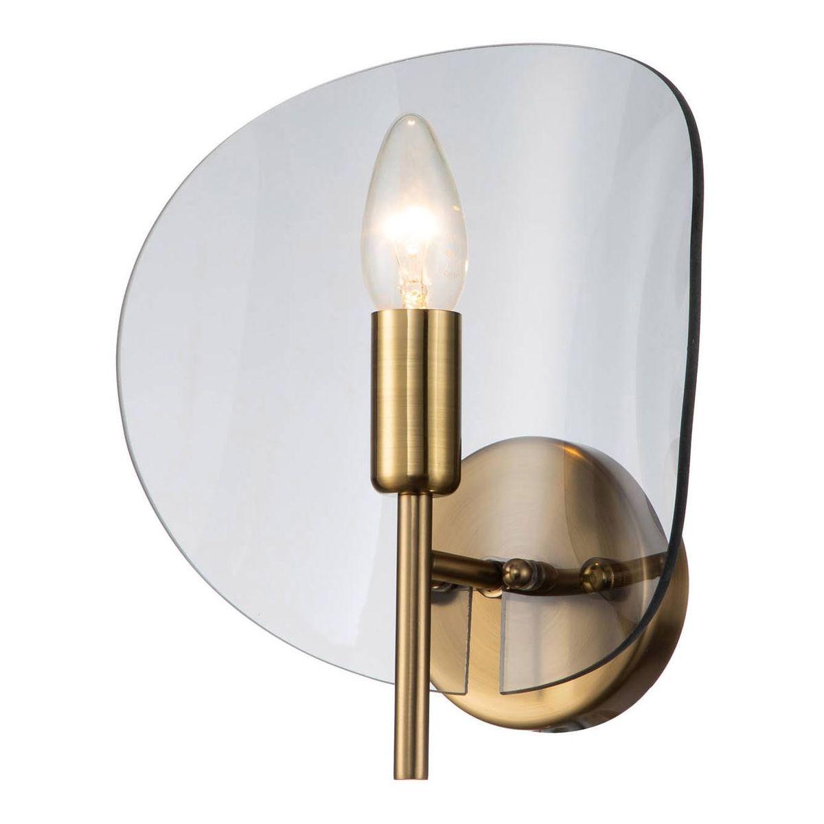 Бра Moderli Ardis V7091-1W от Китайского бренда из коллекции Ardis предназначен для установки в гостиной в стиле модерн. Бра с металлической арматурой цвета латуни и дымчатого цвета плафонами из стекла, формы предназначен для освещения м2.