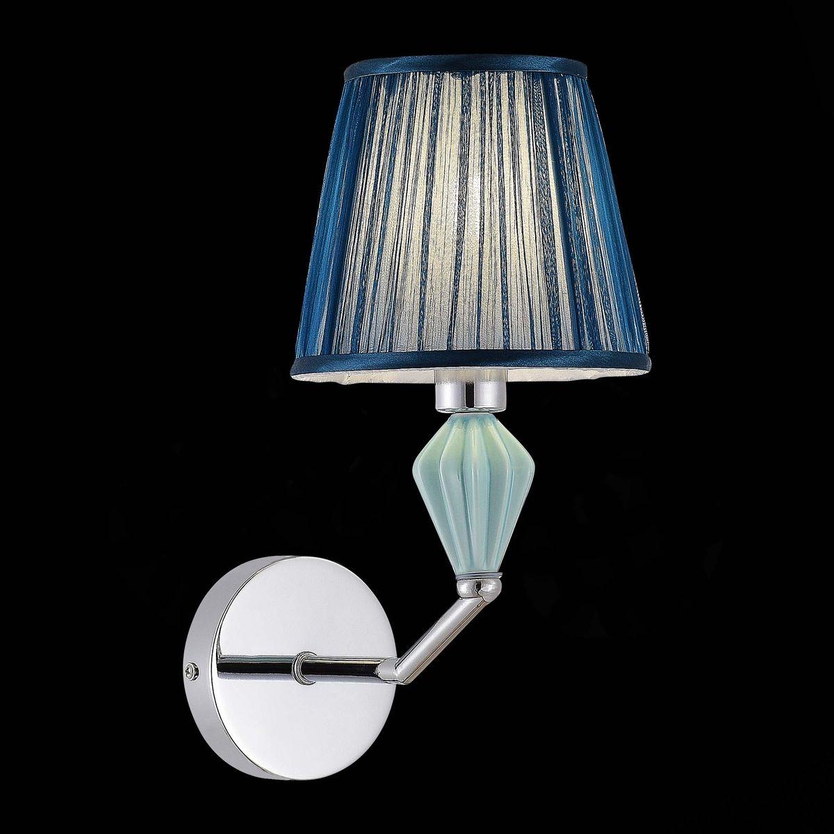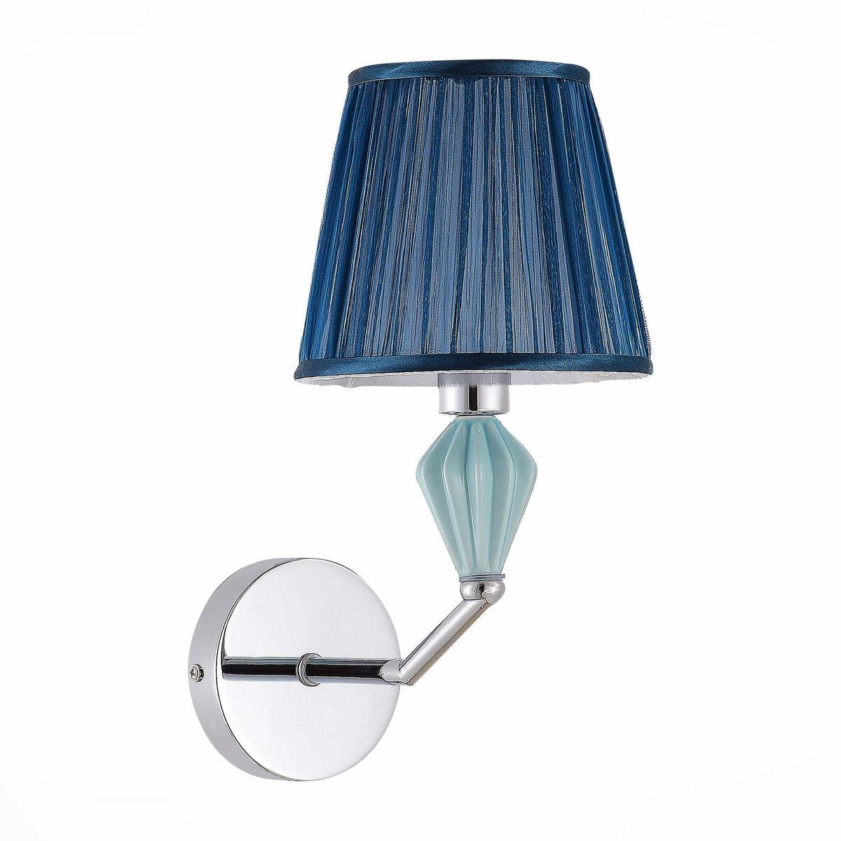 Бра Evoluce Balnea SLE1116-101-01 от бренда из коллекции Balnea предназначен для установки в спальни в классиком стиле. Бра с металлической арматурой цвет хрома и голобого цвета плафонами из ткани, формы предназначен для освещения 2 м2.