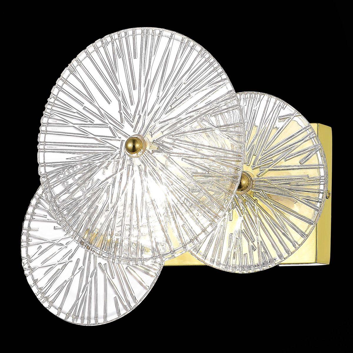Бра ST Luce Flero SL1657.201.01 от Китайского бренда из коллекции Flero предназначен для установки в гостиной в стиле модерн. Бра с металлической арматурой залотого цвета и прозрачного цвета плафонами из стекла, формы предназначен для освещения 2 м2.
