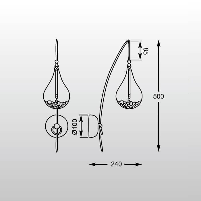 Для БРА необходима 1 галогеновая лампа 35 W и цоколем G4. Габариты изделия: высота – 500 мм, диаметр – мм.