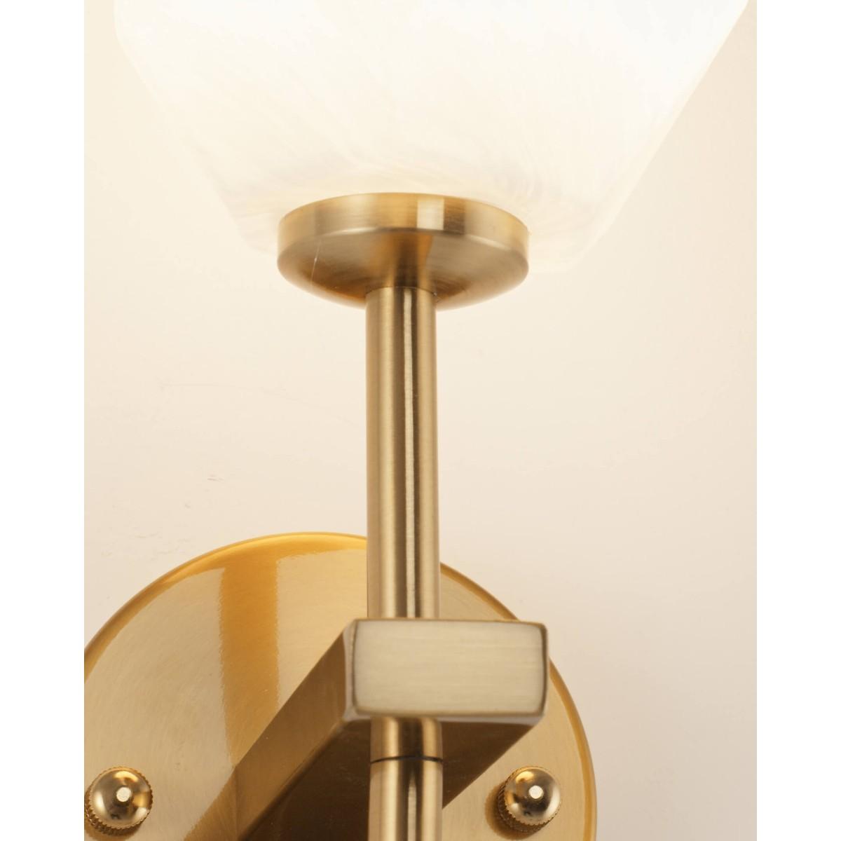 Бра Moderli Catris V10313-1W от Китайского бренда из коллекции Catris предназначен для установки в спальни в стиле модерн. Бра с металлической арматурой цвета латуни и белого цвета плафонами из стекла, формы предназначен для освещения м2.