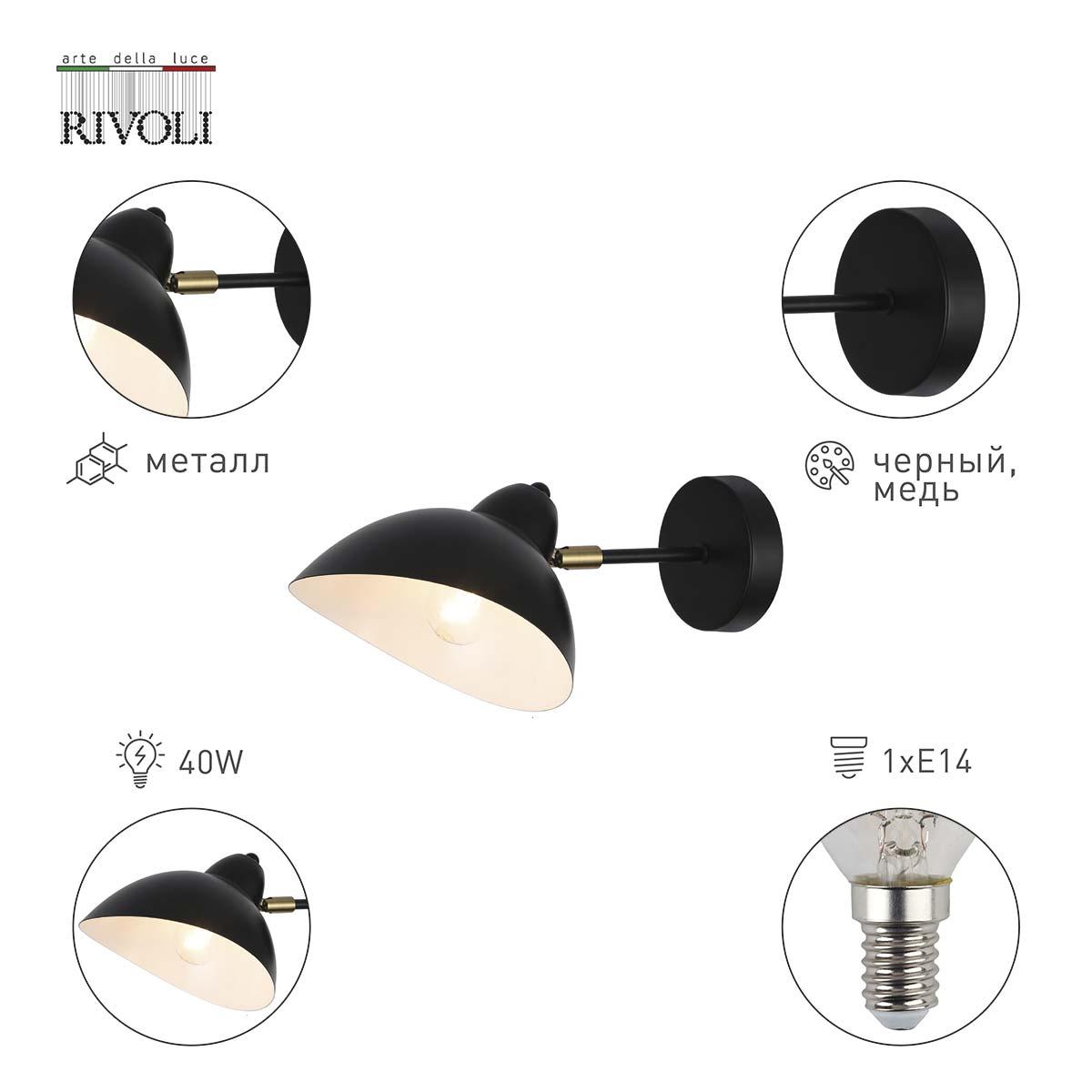 Бра Rivoli Geraldine 4101-401 Б0055674 от Китайского бренда из коллекции Geraldine предназначен для установки в дизайнерском стиле. Бра с металлической арматурой черного цвета и черного цвета плафонами из металла, формы предназначен для освещения 3 м2.