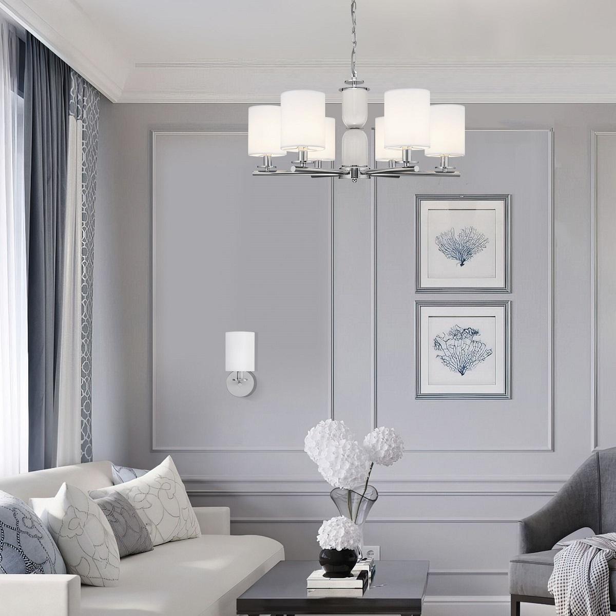 Бра Eurosvet Caprera 60146/1 никель от Китайского бренда из коллекции Caprera предназначен для установки в спальни в классиком стиле. Бра с металлической арматурой цвета никель и белого цвета плафонами из ткани, формы предназначен для освещения 2 м2.