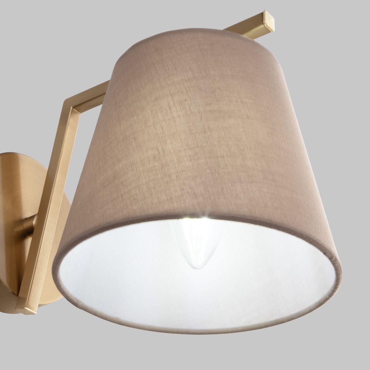 Бра Eurosvet Ozark 60149/1 от Китайского бренда из коллекции Ozark предназначен для установки в спальни в современном стиле. Бра с металлической арматурой цвета латуни и коричневого цвета плафонами из ткани, формы предназначен для освещения 2 м2.