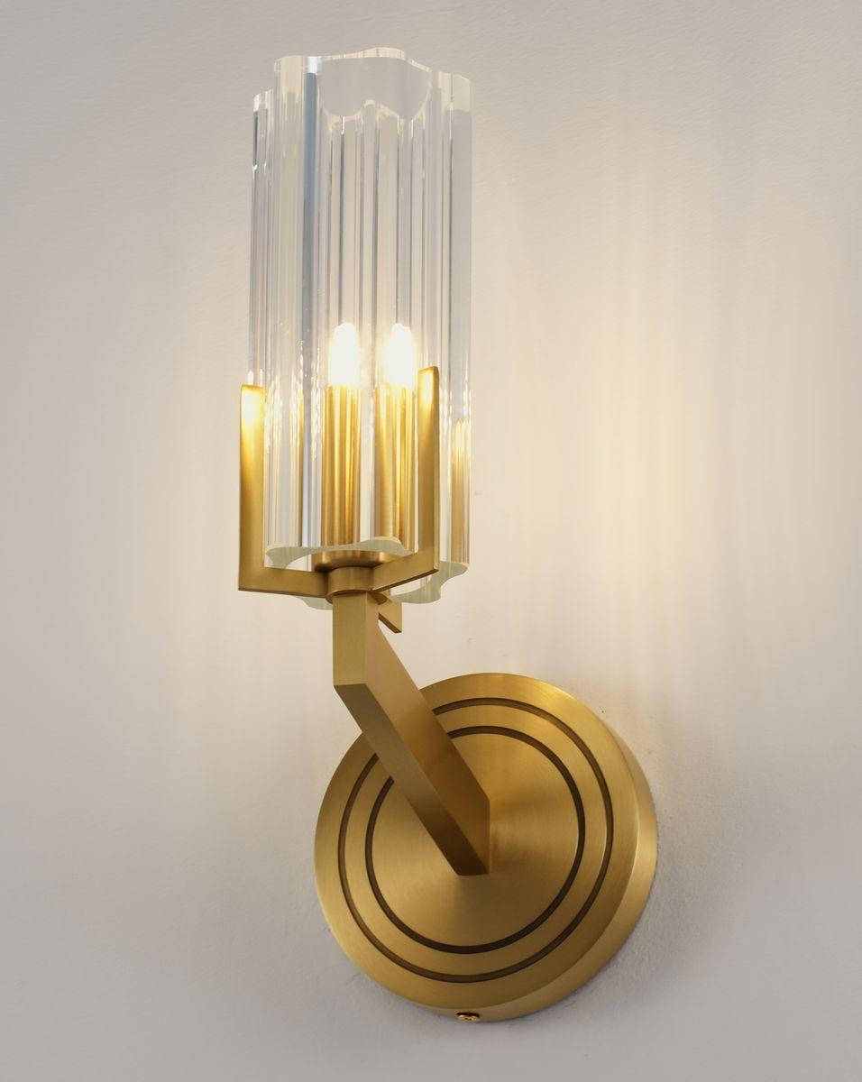 Бра Moderli Brass V11015-1W от Китайского бренда из коллекции Brass предназначен для установки в неоклассическом стиле. Бра с металлической арматурой цвета латуни и прозрачного цвета плафонами из металла, формы предназначен для освещения 2 м2.