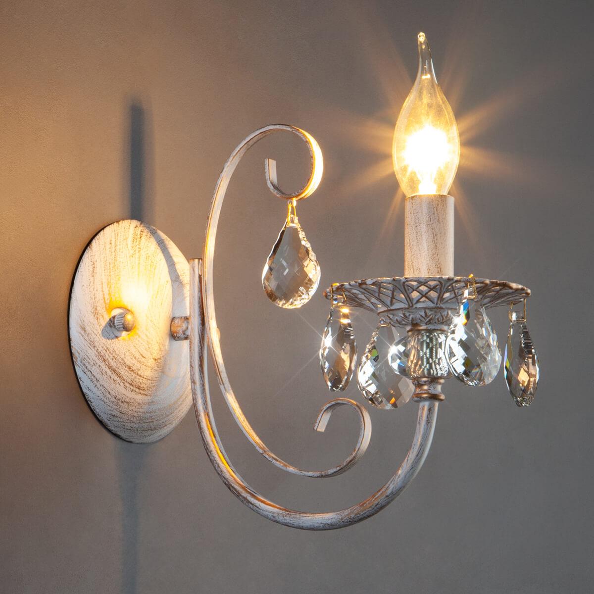 Бра Eurosvet 3305/1 белый с золотом/прозрачный хрусталь Strotskis от Китайского бренда из коллекции 3305 Белый предназначен для установки в гостиной в классиком стиле. Бра с металлической арматурой белого цвета и плафонами из , формы предназначен для освещения м2.