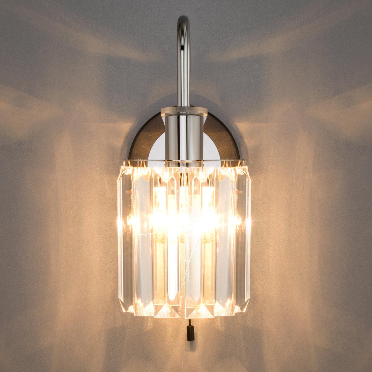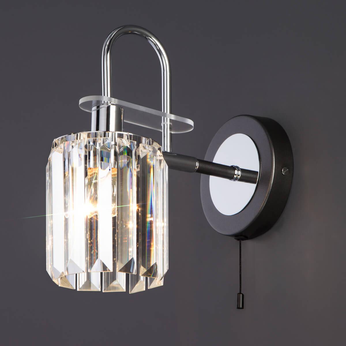 Бра Eurosvet Tenia 70090/1 графит от Китайского бренда из коллекции Tenia предназначен для установки в спальни в стиле модерн. Бра с металлической арматурой цвета графит и прозрачного цвета плафонами из хрусталя, формы предназначен для освещения 3 м2.