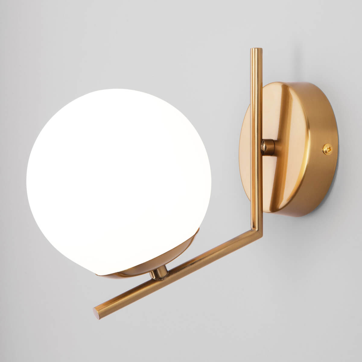 Бра Eurosvet Frost 70152/1 латунь от Китайского бренда из коллекции Frost предназначен для установки в кухне в скандинавском стиле. Бра с металлической арматурой цвета латуни и белого цвета плафонами из стекла, формы предназначен для освещения 3 м2.