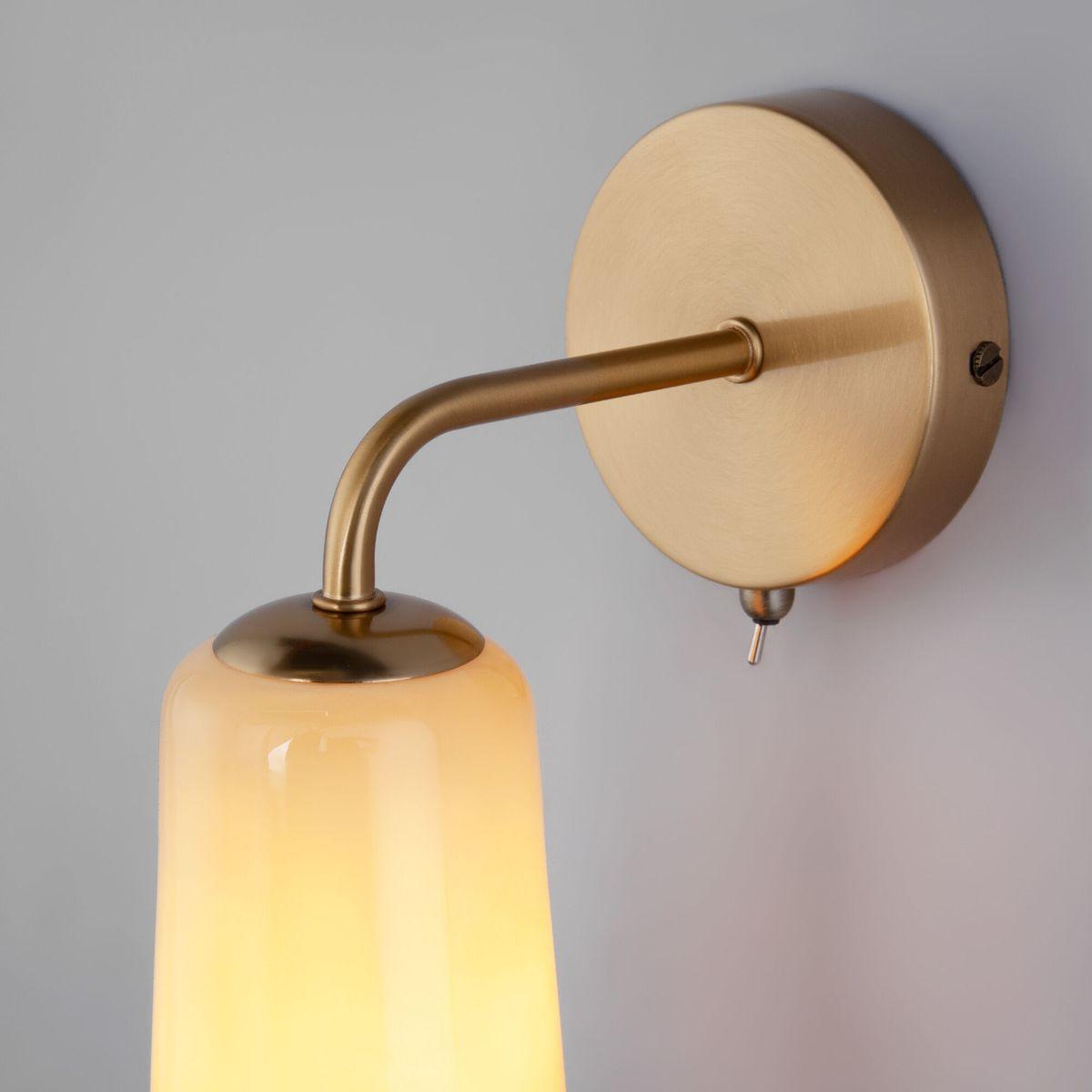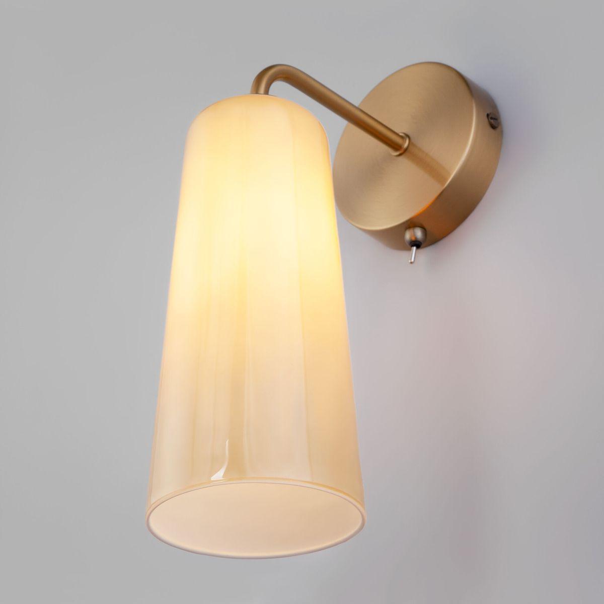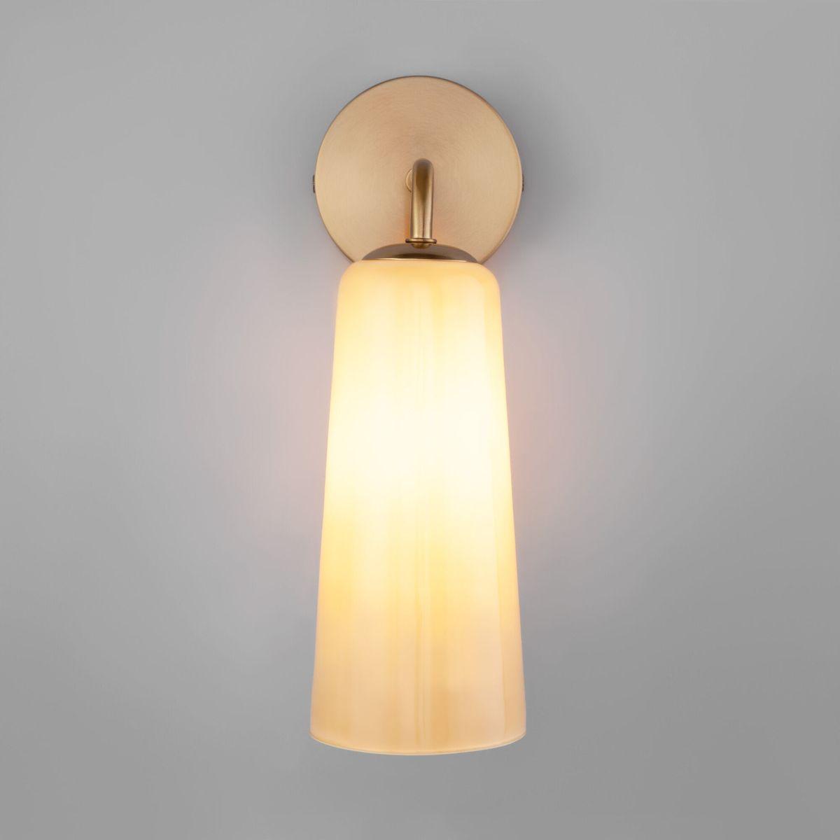 Бра Eurosvet Omber 70137/1 латунь от Китайского бренда из коллекции Omber предназначен для установки в гостиной в современном стиле. Бра с металлической арматурой цвета латуни и бежевого цвета плафонами из стекла, формы предназначен для освещения 2 м2.