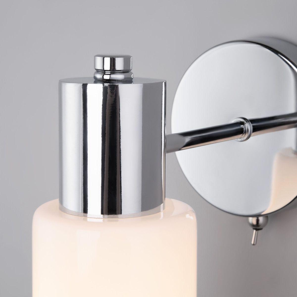 Бра Eurosvet Vegga 70160/1 хром от Китайского бренда из коллекции Vegga предназначен для установки в спальни в минималистическом стиле. Бра с металлической арматурой цвет хрома и белого цвета плафонами из стекла, формы предназначен для освещения 1 м2.