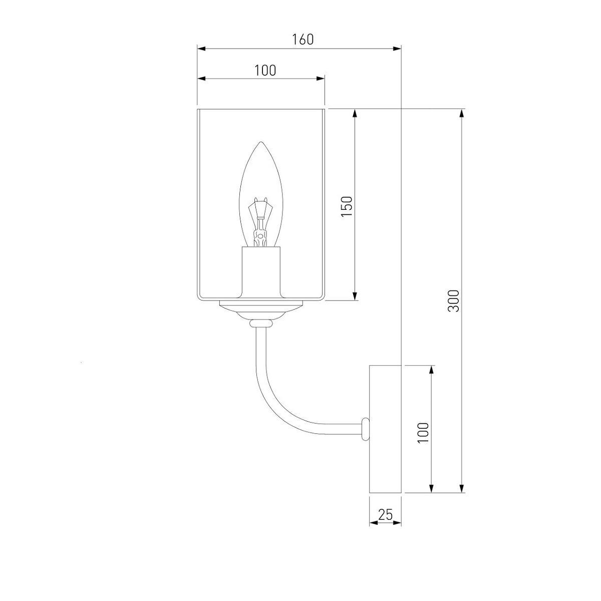 Для БРА необходима 1 лампа накаливания 60 W и цоколем E14. Габариты изделия: высота – 320 мм, диаметр – мм.