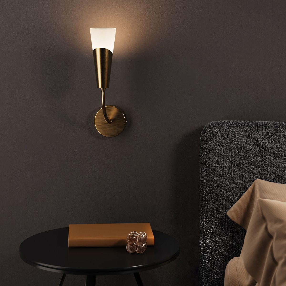 Бра Eurosvet Rhyton 60167/1 латунь от Китайского бренда из коллекции Rhyton предназначен для установки в стиле Арт-деко. Бра с металлической арматурой цвета латуни и белого цвета плафонами из стекла, формы предназначен для освещения 2 м2.