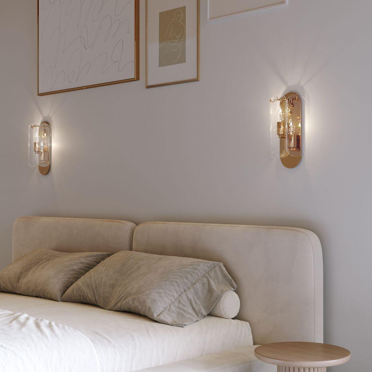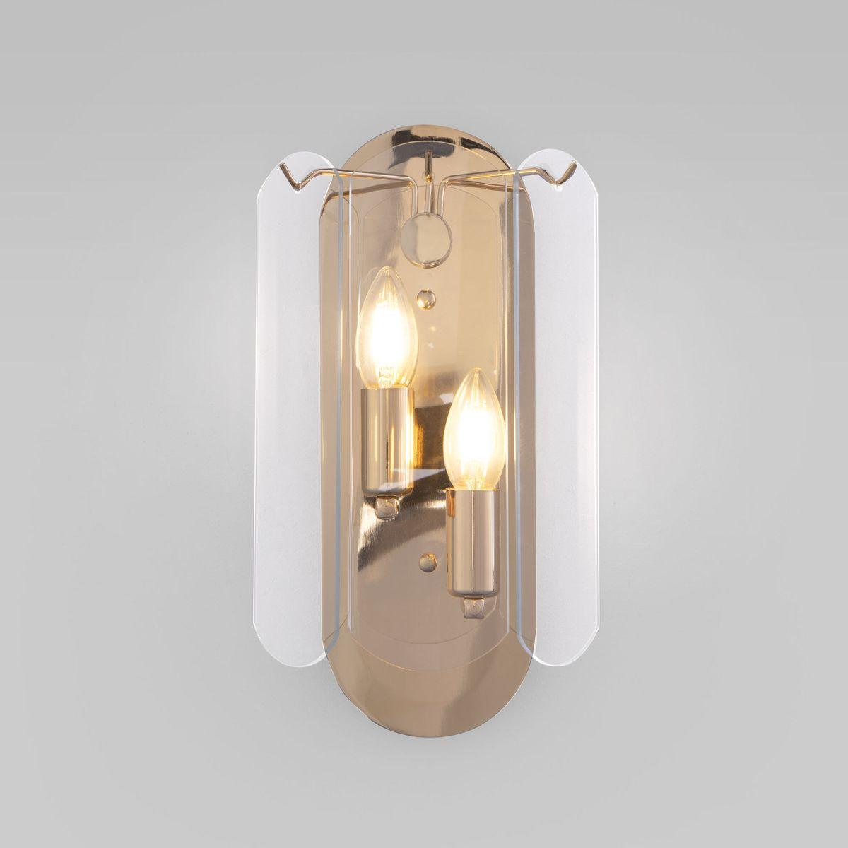 Бра Eurosvet Claire 60170/2 a069010 от Китайского бренда из коллекции Claire предназначен для установки в стиле Арт-деко. Бра с металлической арматурой залотого цвета и прозрачного цвета плафонами из стекла, формы предназначен для освещения 2 м2.