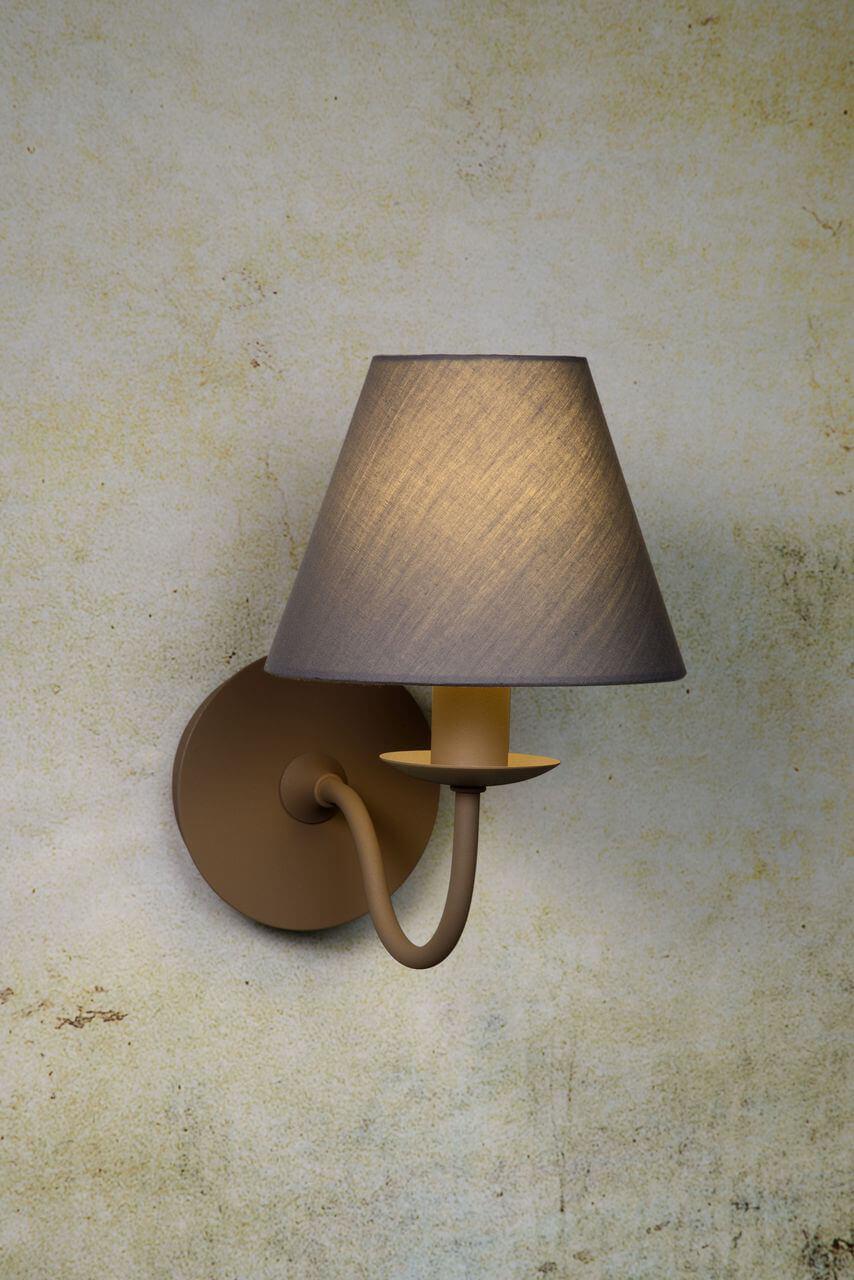 Бра Lucide Campagne 31233/01/41 от Бельгийского бренда Lucide из коллекции Campagne предназначен для установки в спальни в современном стиле. Бра с металлической арматурой коричневого цвета и серого цвета плафонами из ткани, формы конуса предназначен для освещения 2,2 м2.