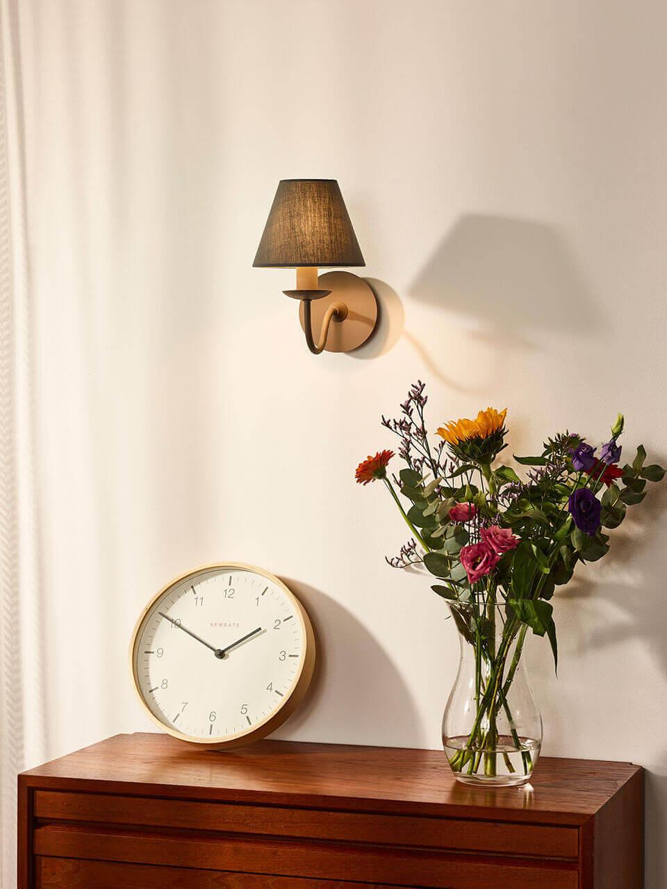 Для БРА необходима 1 лампа накаливания 40 W и цоколем E14. Габариты изделия: высота – 210 мм, диаметр – мм.