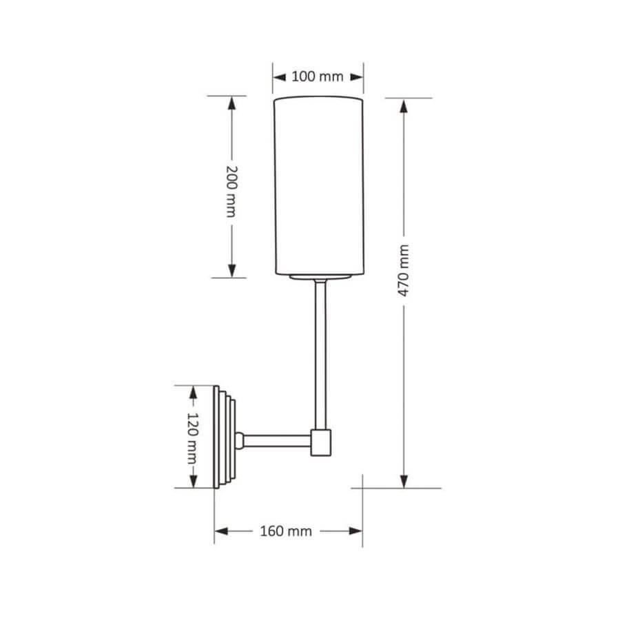 Для БРА необходима 1 лампа накаливания 60 W и цоколем E14. Габариты изделия: высота – 470 мм, диаметр – мм.