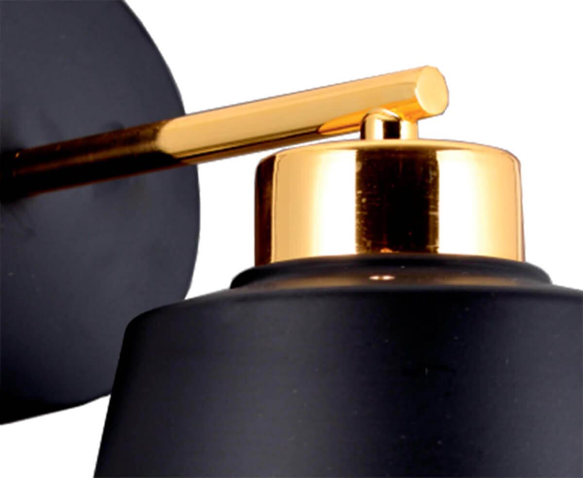 Бра Seven Fires Марио 35202.02.69.01 от Российского бренда Seven Fires из коллекции Марио предназначен для установки в стиле Арт-деко. Бра с металлической арматурой залотого цвета и черного цвета плафонами из металла, формы конуса предназначен для освещения 5 м2.