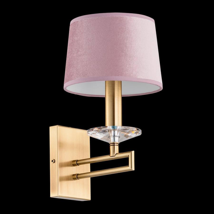 Бра Kutek Zola ZOL-K-1(P/A) от Польского бренда Kutek из коллекции Zola предназначен для установки в спальни в американском стиле. Бра с латунной арматурой бронзового цвета и розового цвета плафонами из ткани, формы конуса предназначен для освещения м2.