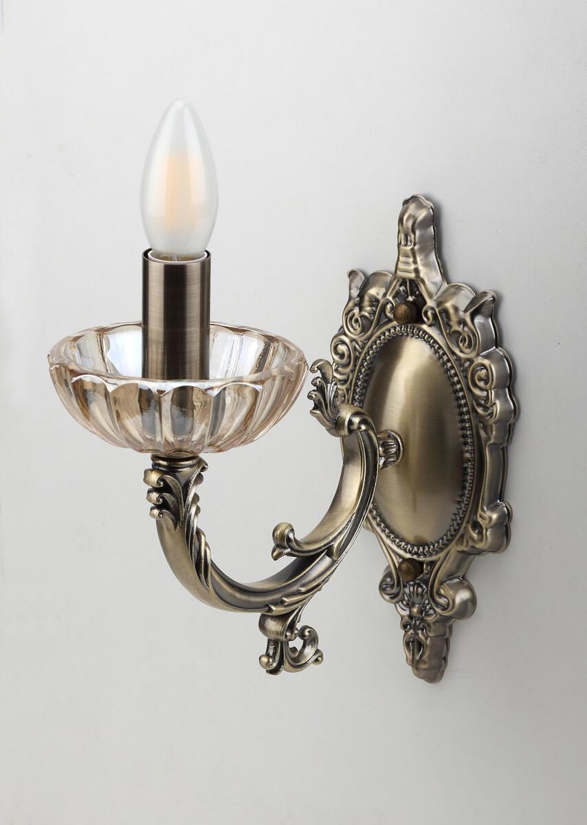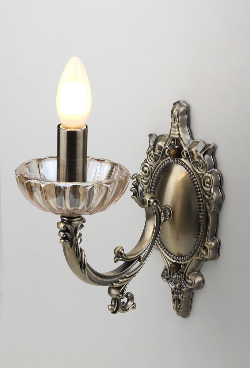 Для БРА необходима 1 лампа накаливания 40 W и цоколем E14. Габариты изделия: высота – 115 мм, диаметр – мм.