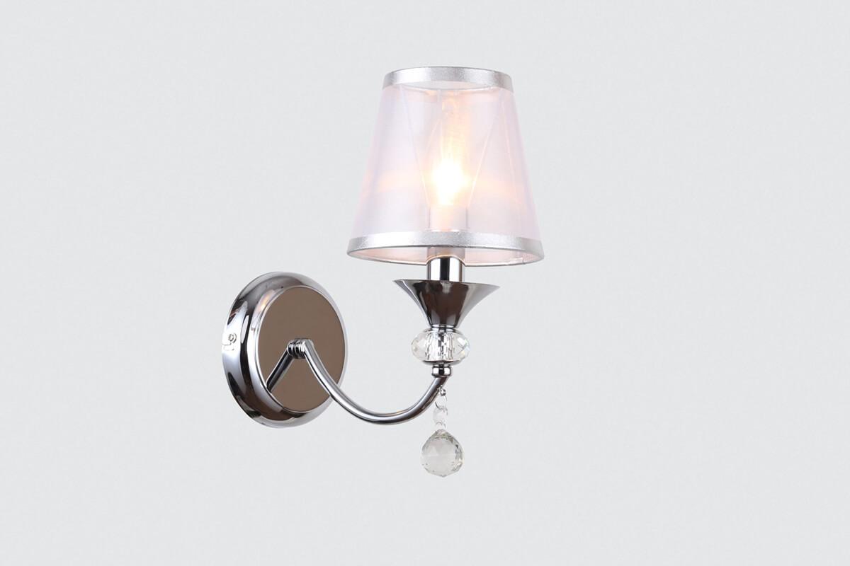 Бра Rivoli Principessa 2038-401 Б0038383 от Итальянского бренда Rivoli из коллекции Principessa предназначен для установки в спальни в классиком стиле. Бра с металлической арматурой цвет хрома и прозрачного цвета плафонами из ткани, формы конуса предназначен для освещения 4 м2.