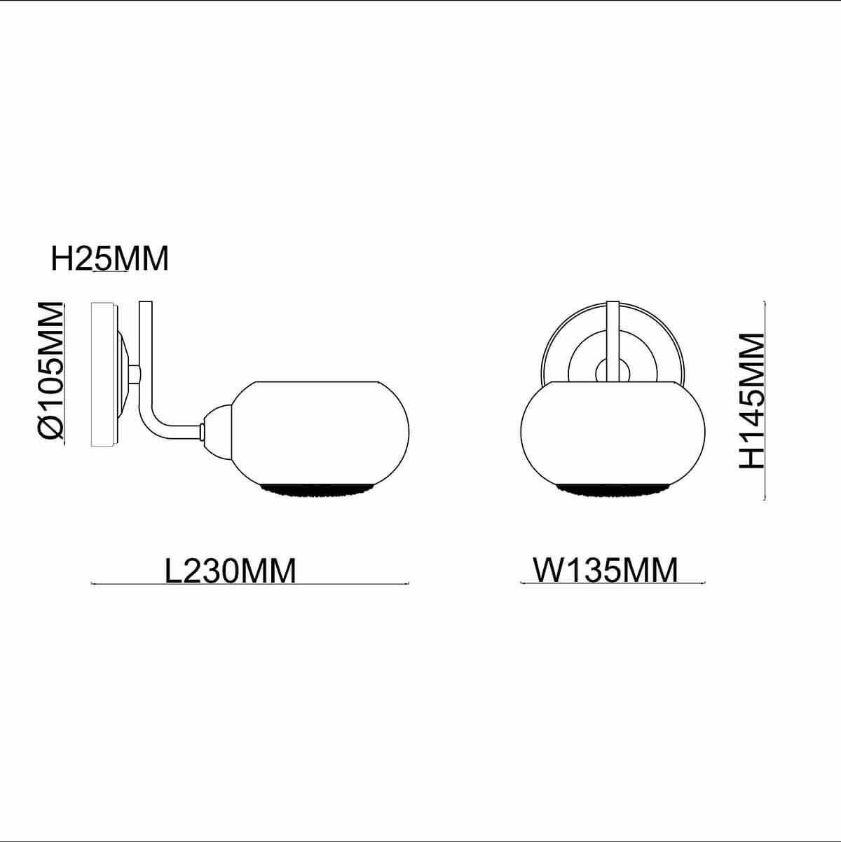 Для БРА необходима 1 лампа накаливания 40 W и цоколем E14. Габариты изделия: высота – 145 мм, диаметр – мм.