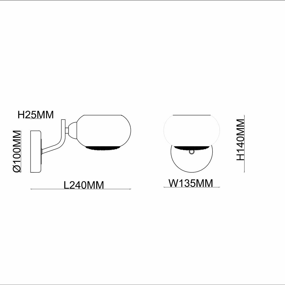 Для БРА необходима 1 лампа накаливания 40 W и цоколем E14. Габариты изделия: высота – 140 мм, диаметр – мм.