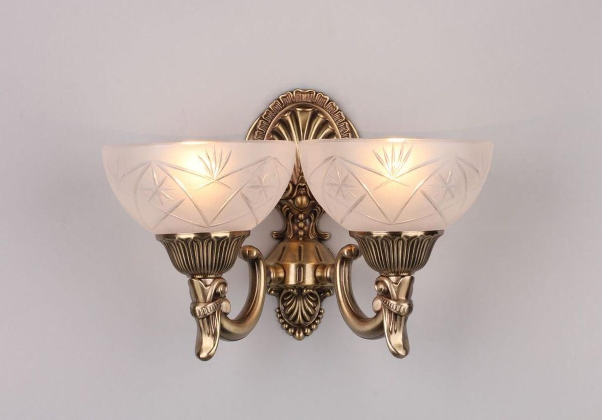 Бра Omnilux OML-35021-02 от Китайского бренда Omnilux из коллекции 350 предназначен для установки в гостиной в классиком стиле. Бра с металлической арматурой бронзового цвета и белого цвета плафонами из стекла, формы полукруга предназначен для освещения 6,7 м2.