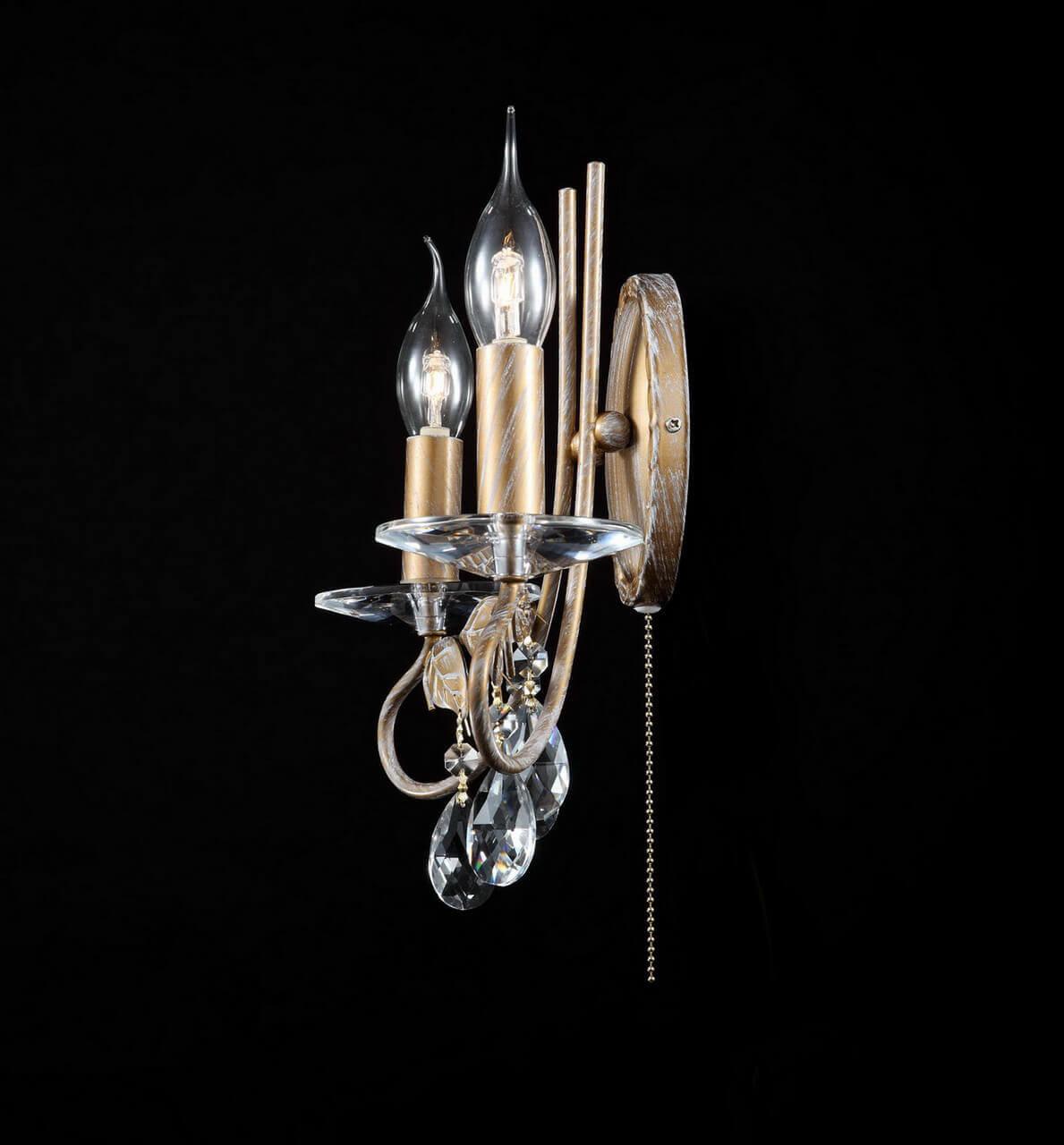 Для БРА необходима 2 лампы накаливания 60 W и цоколем E14. Габариты изделия: высота – 260 мм, диаметр – мм.