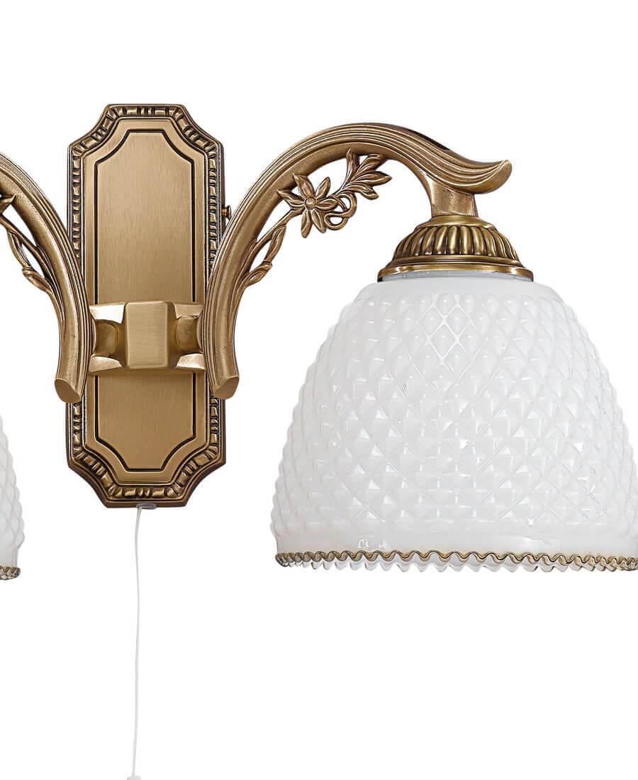 Бра Reccagni Angelo A 8601/2 от Итальянского бренда Reccagni Angelo из коллекции rosa 8601 предназначен для установки в гостиной в классиком стиле. Бра с латунной арматурой цвета античной бронзы и белого цвета плафонами из стекла, формы овала предназначен для освещения 6 м2.