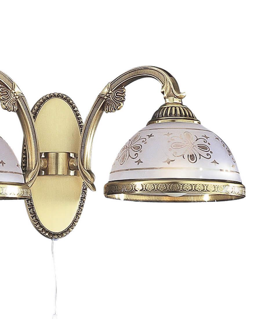 Бра Reccagni Angelo A 6002/2 от Итальянского бренда Reccagni Angelo из коллекции silver 6002 предназначен для установки в гостиной в классиком стиле. Бра с латунной арматурой цвета античной бронзы и белого цвета плафонами из стекла, формы полукруга предназначен для освещения 6 м2.