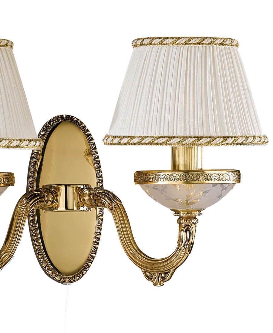 Бра Reccagni Angelo A 6502/2 от Итальянского бренда Reccagni Angelo из коллекции blue 6502 предназначен для установки в гостиной в классиком стиле. Бра с латунной арматурой залотого цвета и белого цвета плафонами из стекла, формы конуса предназначен для освещения 6 м2.
