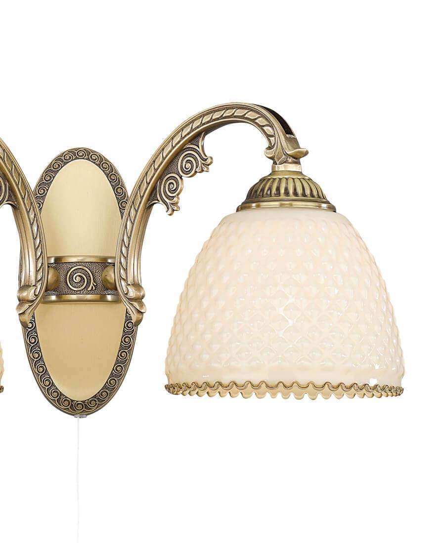 Бра Reccagni Angelo A 7005/2 от Итальянского бренда Reccagni Angelo из коллекции rosa 7005 предназначен для установки в гостиной в классиком стиле. Бра с латунной арматурой цвета античной бронзы и бежевого цвета плафонами из стекла, формы полукруга предназначен для освещения 6 м2.