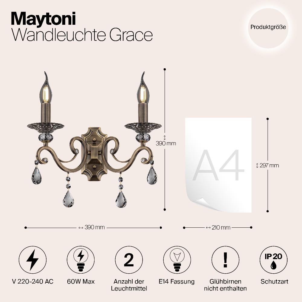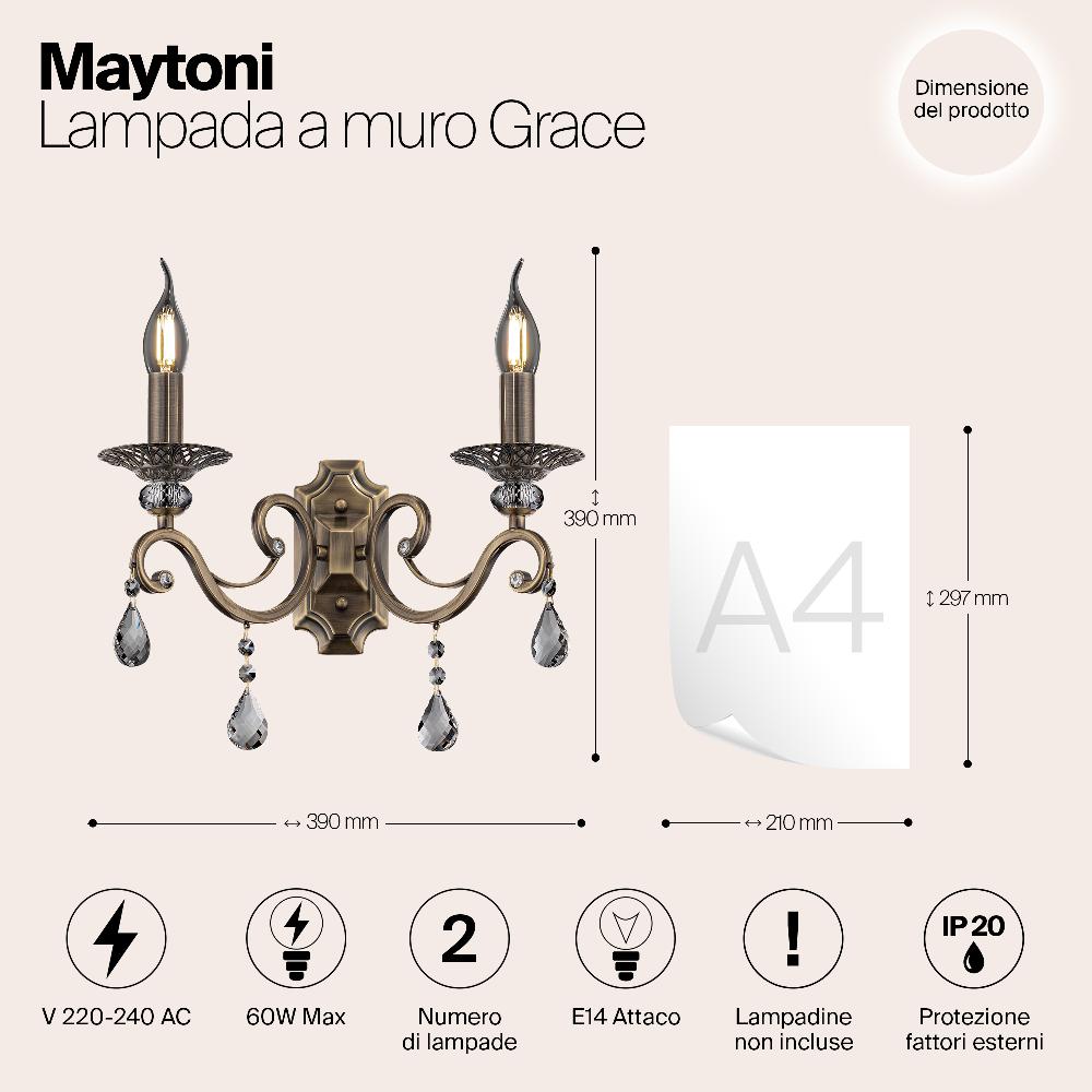 Бра Maytoni Grace RC247-WL-02-R от бренда Maytoni из коллекции Royal Classic предназначен для установки в прихожей в . Бра с металлической арматурой бронзового цвета и прозрачного цвета плафонами из стекла, формы предназначен для освещения 6,7 м2.