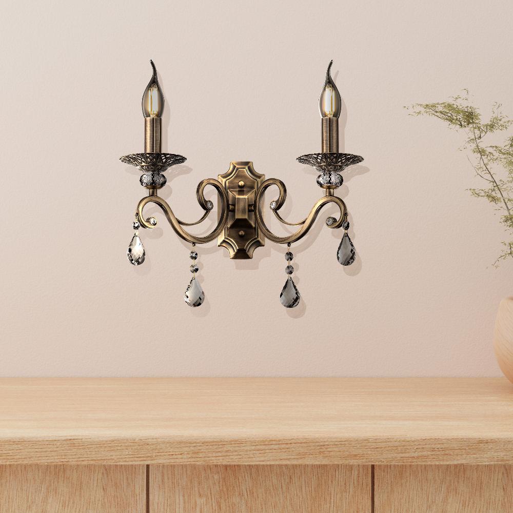 Для БРА необходима 2 лампы накаливания 60 W и цоколем E14. Габариты изделия: высота – 390 мм, диаметр – мм.