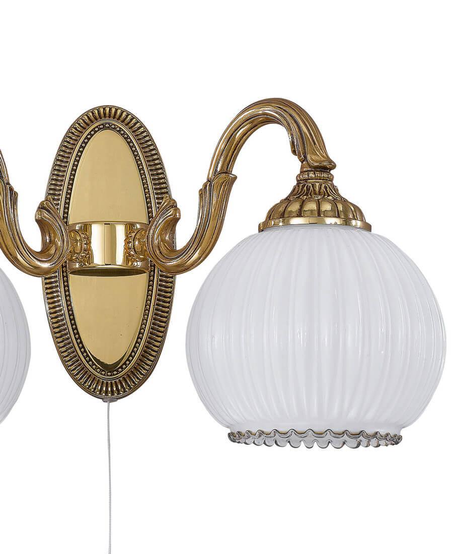 Бра Reccagni Angelo A 9300/2 от Итальянского бренда Reccagni Angelo из коллекции 9300 предназначен для установки в гостиной в классиком стиле. Бра с латунной арматурой залотого цвета и белого цвета плафонами из стекла, формы круга предназначен для освещения 6 м2.