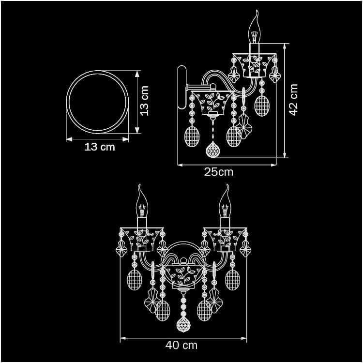 Для БРА необходима 2 лампы накаливания 60 W и цоколем E14. Габариты изделия: высота – 420 мм, диаметр – мм.
