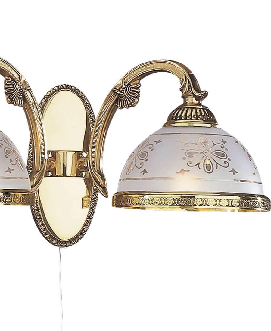 Бра Reccagni Angelo A.6102/2 от Итальянского бренда из коллекции silver 6102 предназначен для установки в гостиной в классиком стиле. Бра с латунной арматурой и белого цвета плафонами из стекла, формы предназначен для освещения 6 м2.