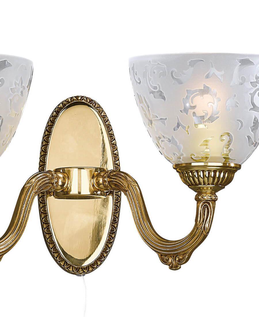 Бра Reccagni Angelo A.6352/2 от Итальянского бренда из коллекции verde 6352 предназначен для установки в гостиной в классиком стиле. Бра с латунной арматурой и белого цвета плафонами из стекла, формы предназначен для освещения 6 м2.