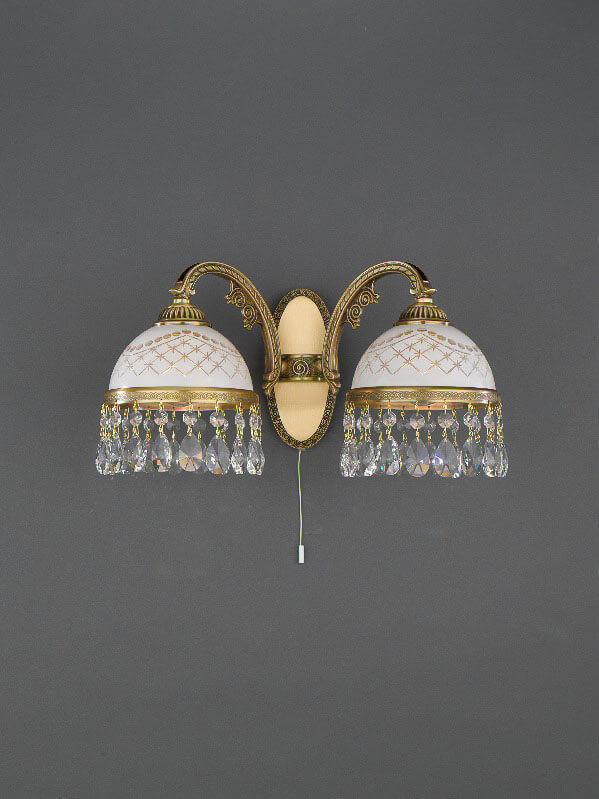 Бра Reccagni Angelo A.7000/2 от Итальянского бренда из коллекции rosa 7000 предназначен для установки в гостиной в классиком стиле. Бра с латунной арматурой цвета античной бронзы и белого цвета плафонами из стекла, формы предназначен для освещения 6 м2.