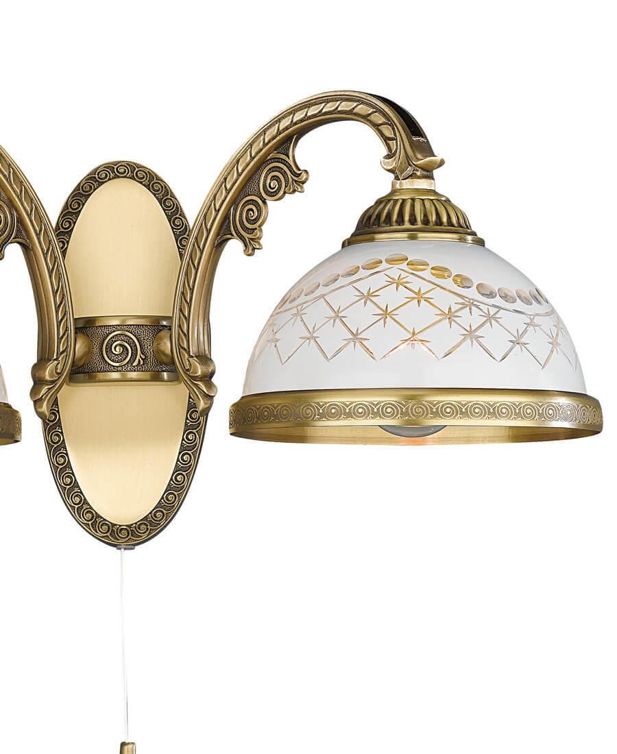 Бра Reccagni Angelo A.7002/2 от Итальянского бренда из коллекции Bronze 7002 предназначен для установки в гостиной в классиком стиле. Бра с латунной арматурой цвета античной бронзы и белого цвета плафонами из стекла, формы предназначен для освещения 6 м2.