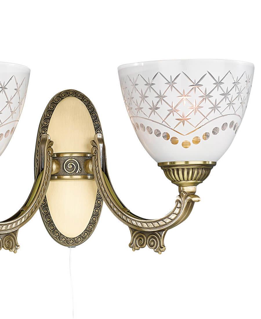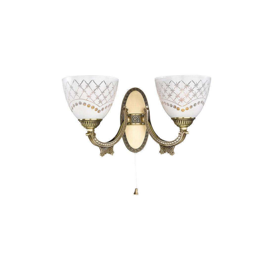 Бра Reccagni Angelo A.7052/2 от Итальянского бренда из коллекции Bronze 7052 предназначен для установки в гостиной в классиком стиле. Бра с латунной арматурой цвета античной бронзы и белого цвета плафонами из стекла, формы предназначен для освещения 6 м2.