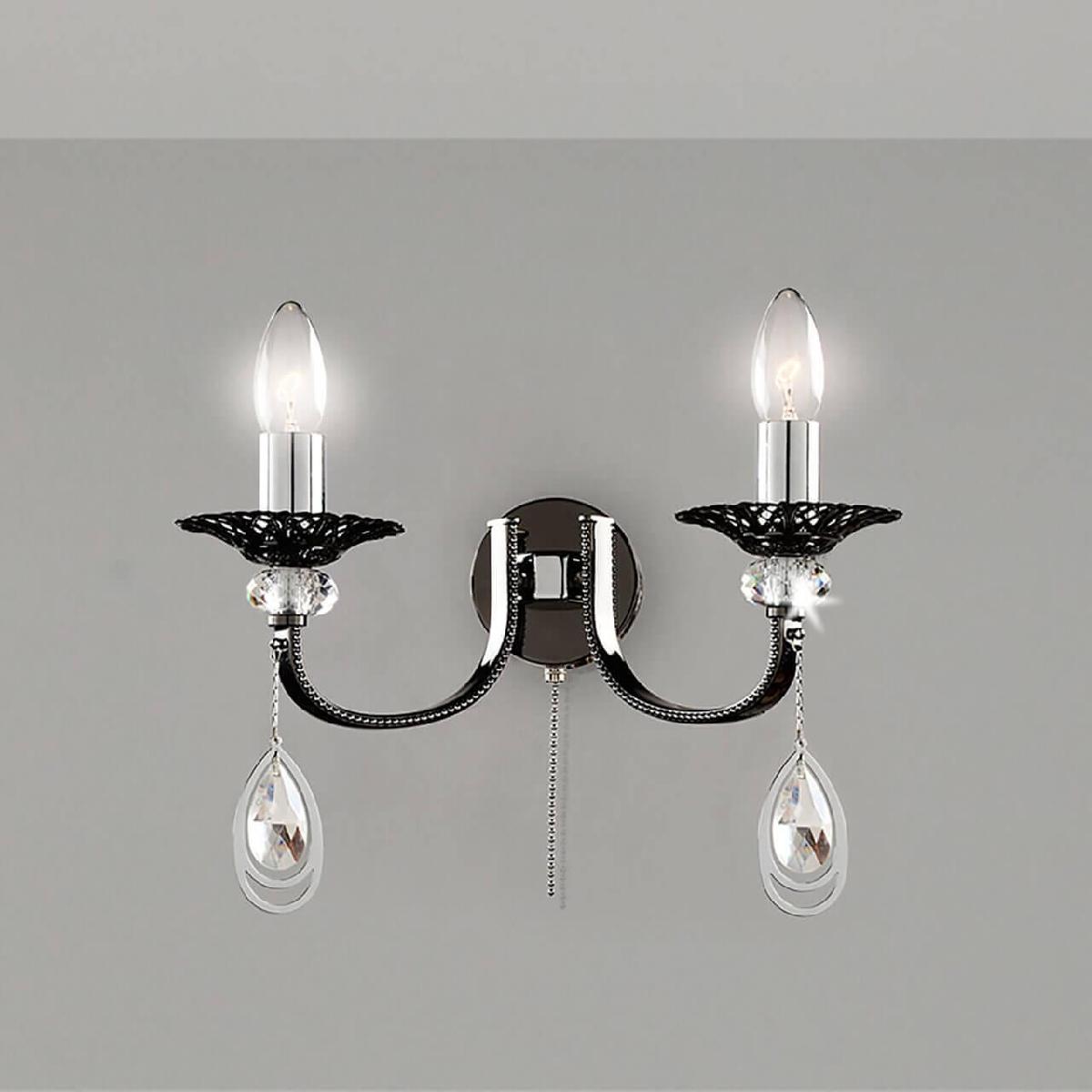 Для БРА необходима 2 лампы накаливания 60 W и цоколем E14. Габариты изделия: высота – 220 мм, диаметр – мм.