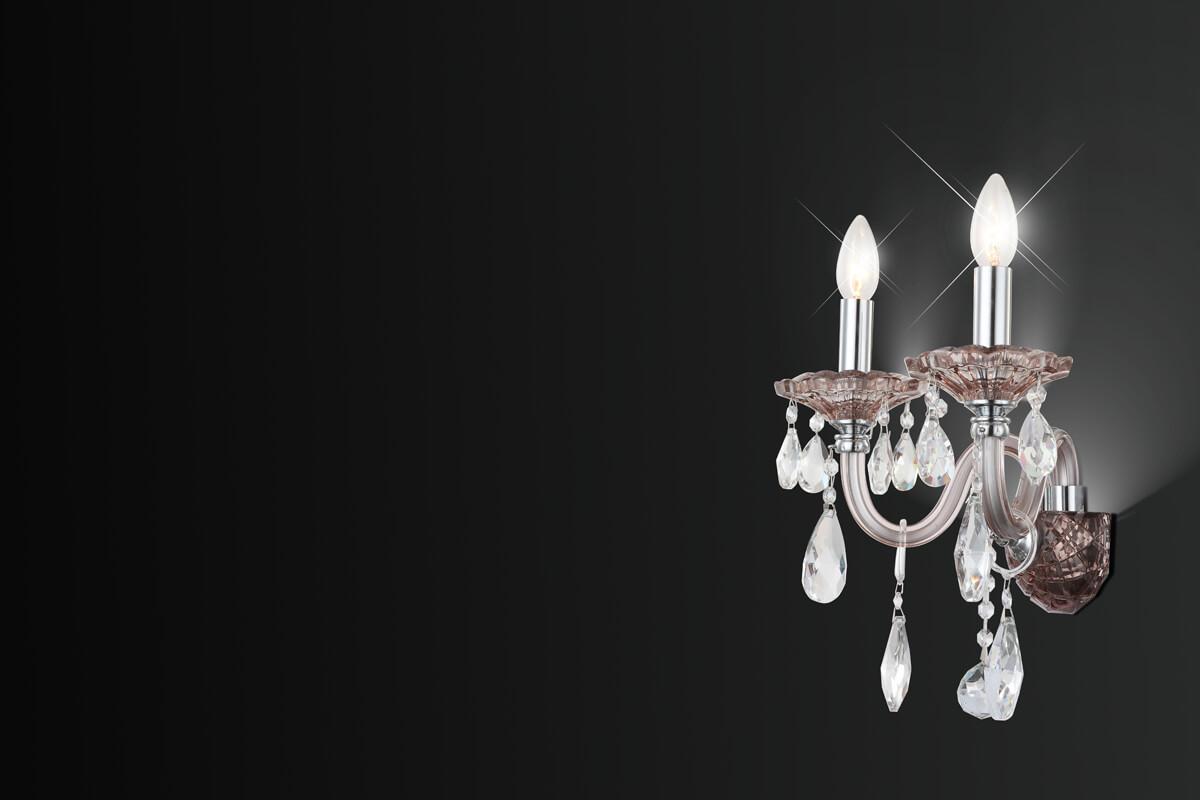 Для БРА необходима 2 лампы накаливания 40 W и цоколем E14. Габариты изделия: высота – 430 мм, диаметр – мм.
