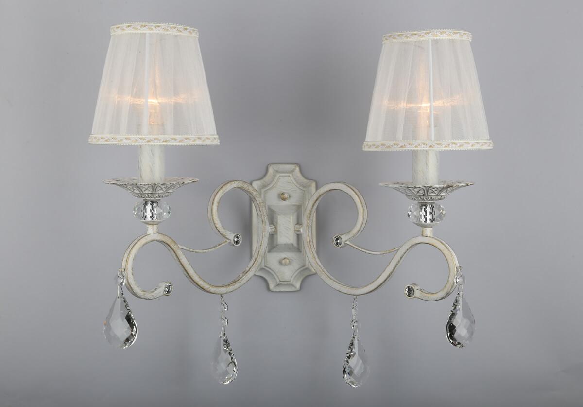 Бра Omnilux OML-79101-02 от Китайского бренда Omnilux из коллекции 791 предназначен для установки в гостиной в классиком стиле. Бра с металлической арматурой белого цвета и белого цвета плафонами из ткани, формы конуса предназначен для освещения 4 м2.