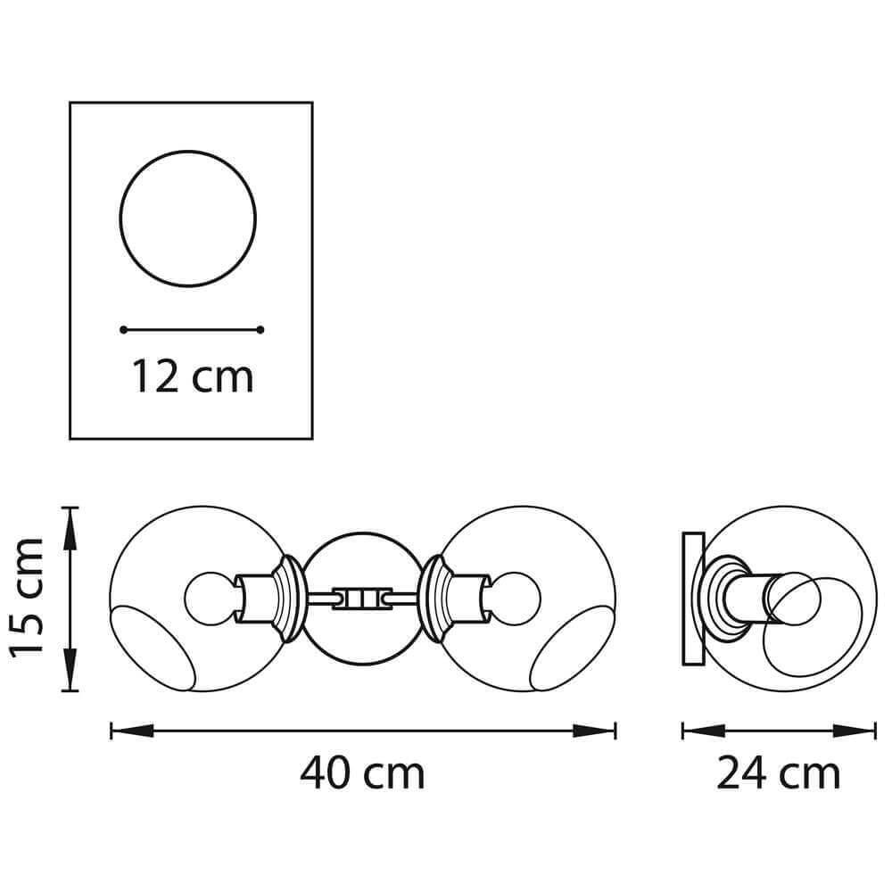 Для БРА необходима 2 лампы накаливания 40 W и цоколем E27. Габариты изделия: высота – 150 мм, диаметр – мм.