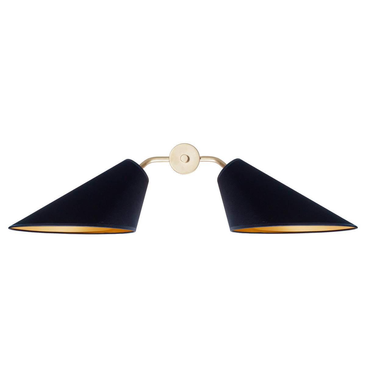 Бра TopDecor Bee A2 21 02/21 от Российского бренда TopDecor из коллекции Bee предназначен для установки в прихожей в современном стиле. Бра с металлической арматурой залотого цвета и черного цвета плафонами из ткани, формы конуса предназначен для освещения 6,7 м2.