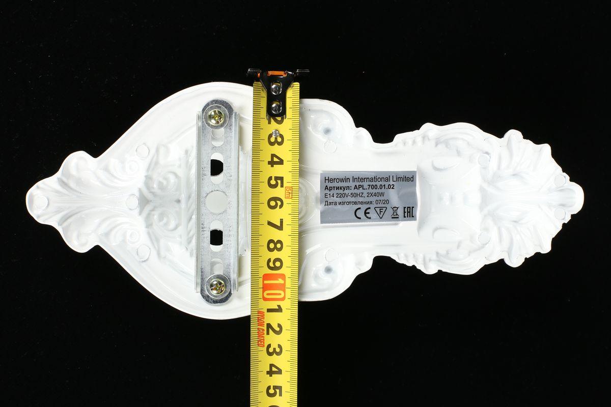 Для БРА необходима 2 лампы накаливания 40 W и цоколем E14. Габариты изделия: высота – 400 мм, диаметр – 0 мм.