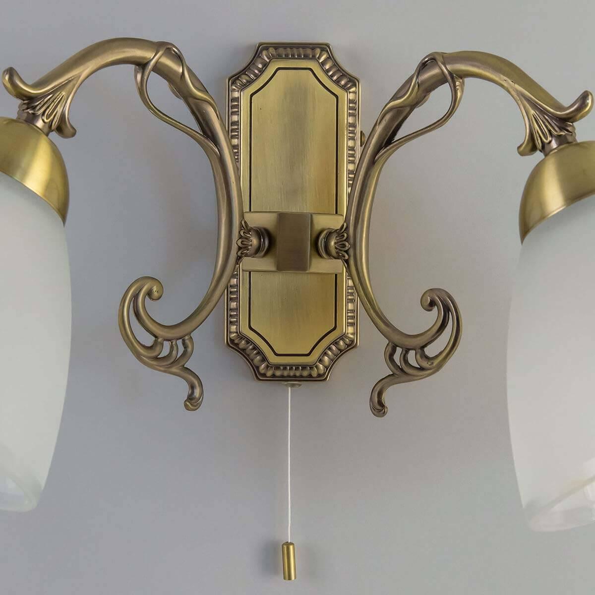 Бра Citilux Латур CL413421 от Китайского бренда Citilux из коллекции Латур предназначен для установки в гостиной в классиком стиле. Бра с металлической арматурой бронзового цвета и белого цвета плафонами из стекла, формы конуса предназначен для освещения 8,3 м2.